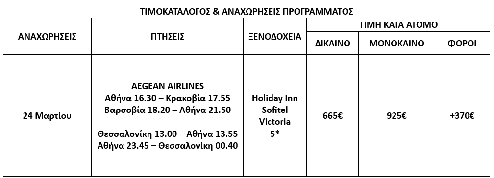 Day 1: Athens/Thessaloniki – Krakow Poland welcomes us