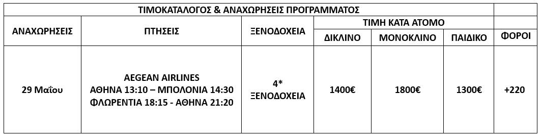 Air tickets ATHENS – BOLOGNA & FLORENCE - ATHENS with AEGEAN