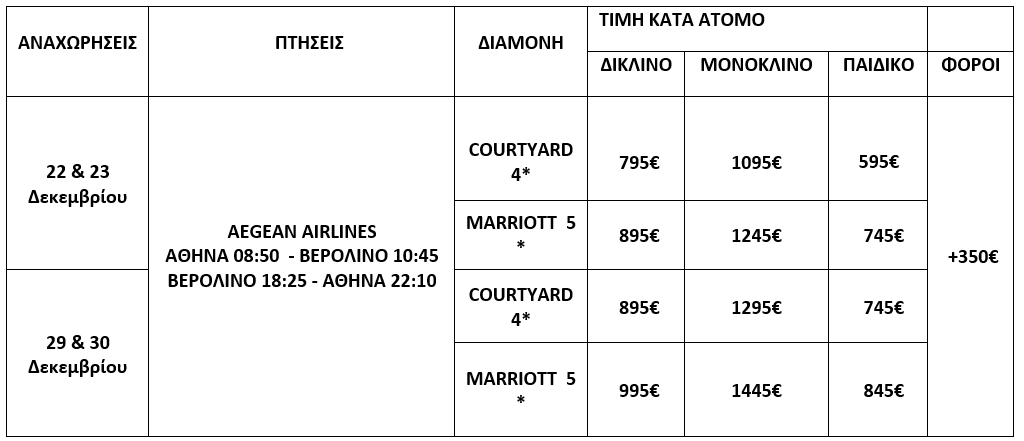 ΒΕΡΟΛΙΝΟ - 6 ΗΜΕΡΕΣ - ΧΡΙΣΤΟΥΓΕΝΝΑ - ΠΡΩΤΟΧΡΟΝΙΑ - ΘΕΟΦΑΝΕΙΑ