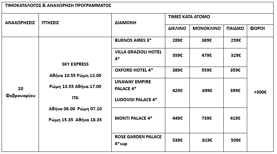 ΚΑΘΑΡΑ ΔΕΥΤΕΡΑ ΣΕ ΡΩΜΗ - ΒΑΤΙΚΑΝΟ - ΦΛΩΡΕΝΤΙΑ - 4 ΗΜΕΡΕΣ