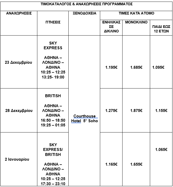 ΛΟΝΔΙΝΟ – HARRY POTTER ΧΡΙΣΤΟΥΓΕΝΝΑ – ΠΡΩΤΟΧΡΟΝΙΑ – ΘΕΟΦΑΝΕΙΑ 2026 - 5 ΗΜΕΡΕΣ