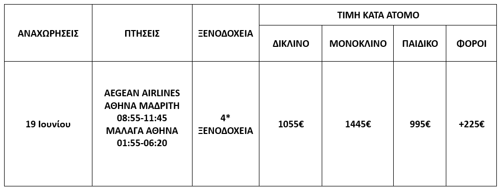 Αεροπορικά εισιτήρια οικονομικής θέσης ΑΘΗΝΑ-ΜΑΔΡΙΤΗ & ΜΑΛΑΓΑ ΑΘΗΝΑ με απευθείας πτήσεις της Aegean Airlines