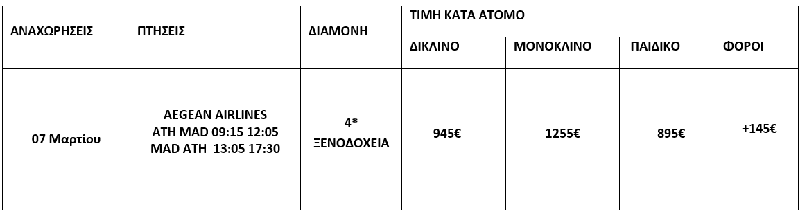 1η μέρα ΑΘΗΝΑ – ΜΑΔΡΙΤΗ