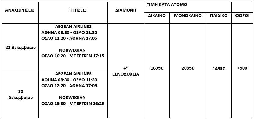 ΝΟΡΒΗΓΙΑ - 6 ΗΜΕΡΕΣ - ΧΡΙΣΤΟΥΓΕΝΝΑ - ΠΡΩΤΟΧΡΟΝΙΑ - ΘΕΟΦΑΝΕΙΑ