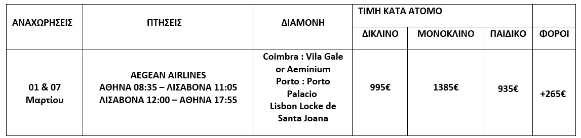 ΠΑΝΟΡΑΜΑ ΠΟΡΤΟΓΑΛΙΑΣ - 8 ΗΜΕΡΕΣ - ΜΑΡΤΙΟΣ 2026