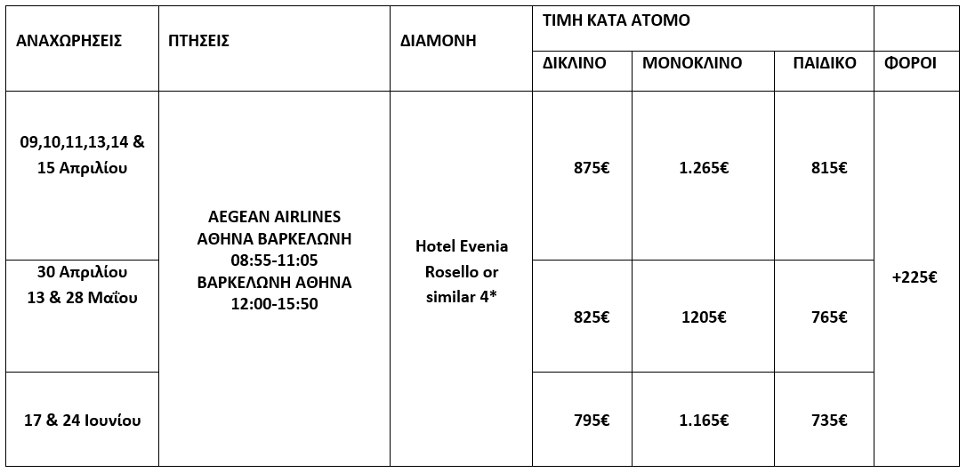 -Για την είσοδό σας στη Sagrada Familia & την συμμετοχή σας στην προαιρετική δεύτερη ξενάγηση με είσοδο στο Park Guell, κ.α., χρειάζεται έγκαιρη δήλωση συμμετοχής το αργότερο 10 ημέρες πριν την αναχώρηση σας.
