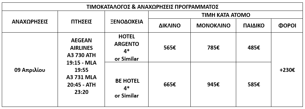 -Αεροπορικά εισιτήρια Αθήνα – Μάλτα – Αθήνα με την Aegean Airlines