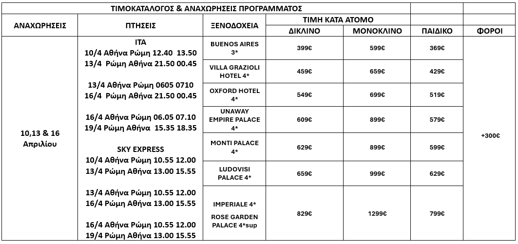 ΠΑΣΧΑ ΣΤΗ ΡΩΜΗ - 4 ΗΜΕΡΕΣ