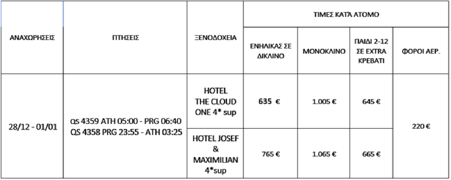 - 4 διανυκτερεύσεις στην Πράγα σε ξενοδοχεία 4*sup με πρωινό.